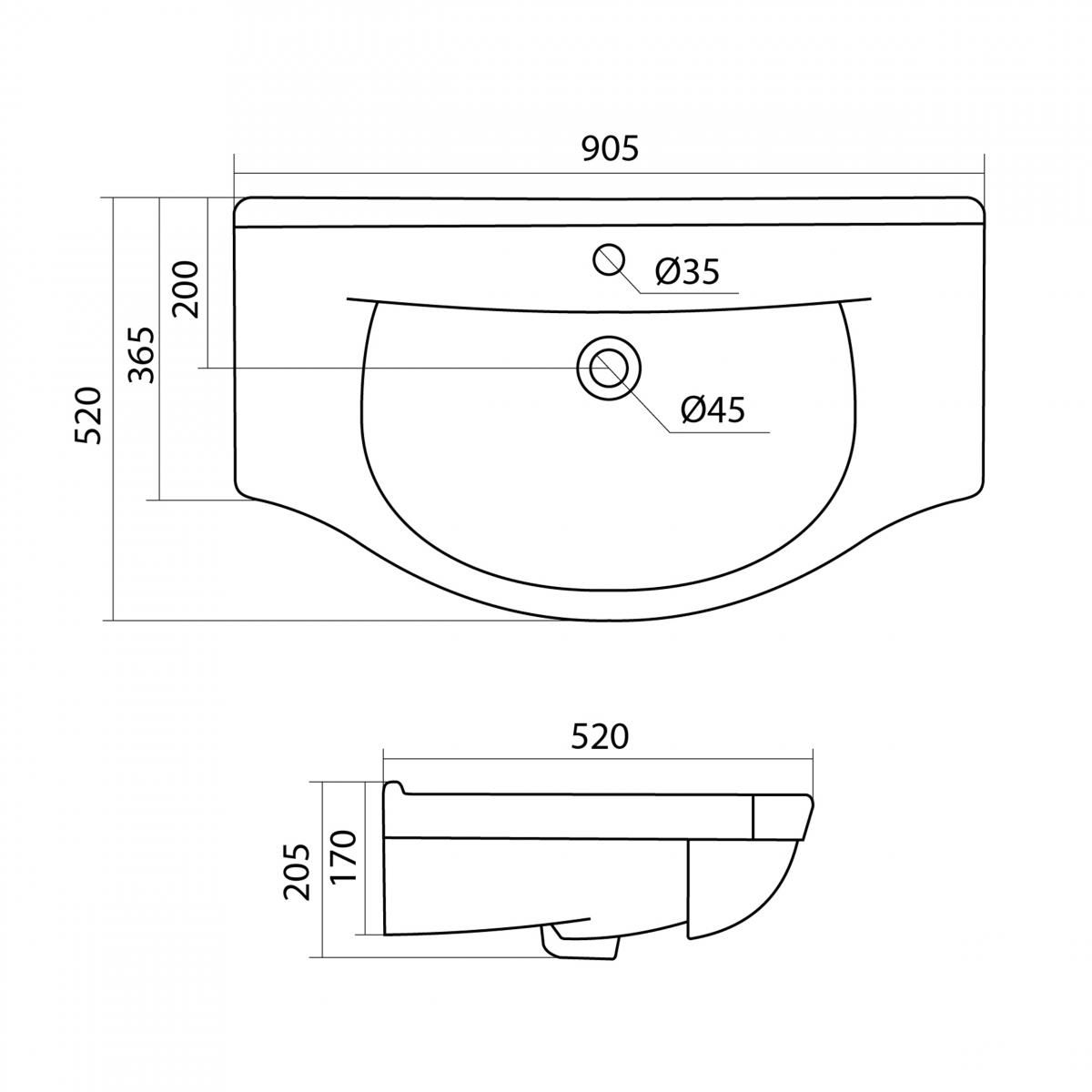 —Раковина Santek ЭЛЬБРУС 90 см.